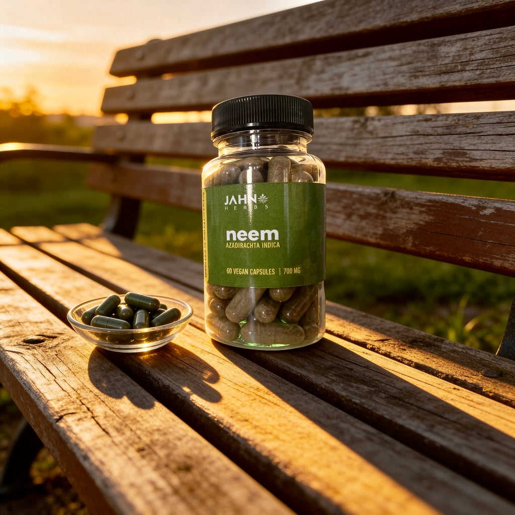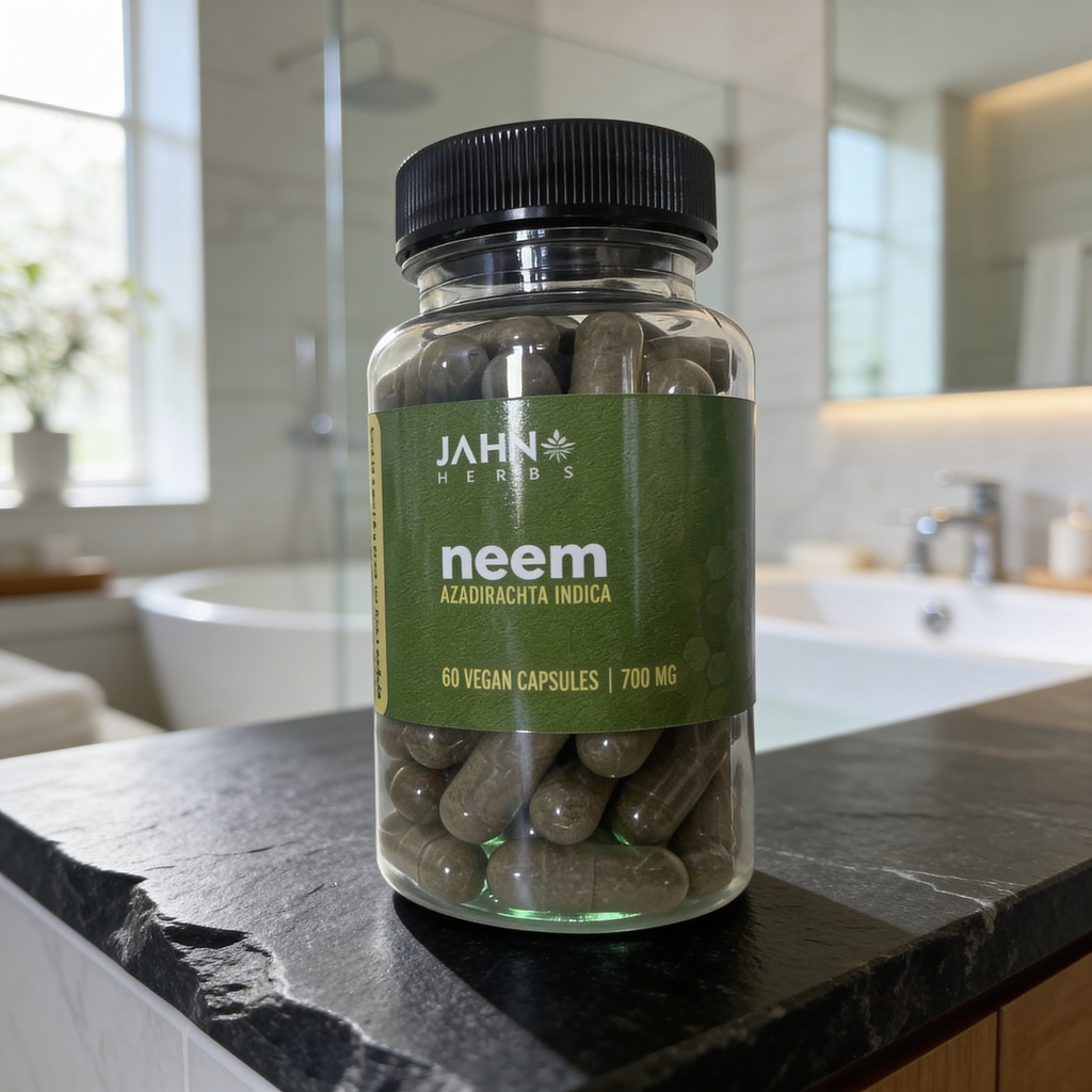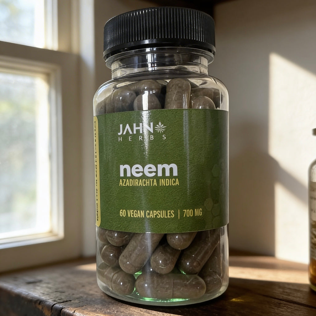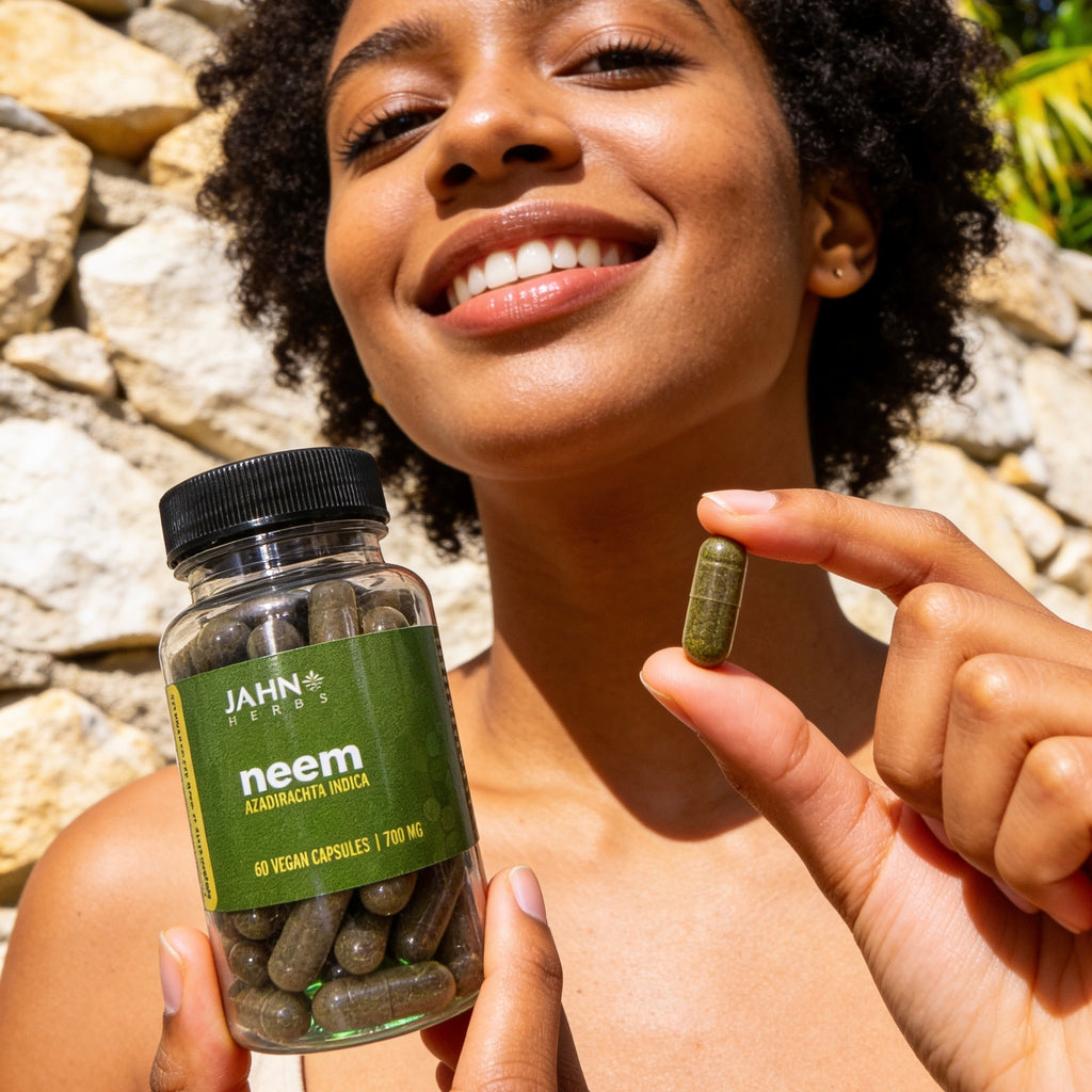 Jamaican Neem Herb made into fine powder and placed in vegan capsules
