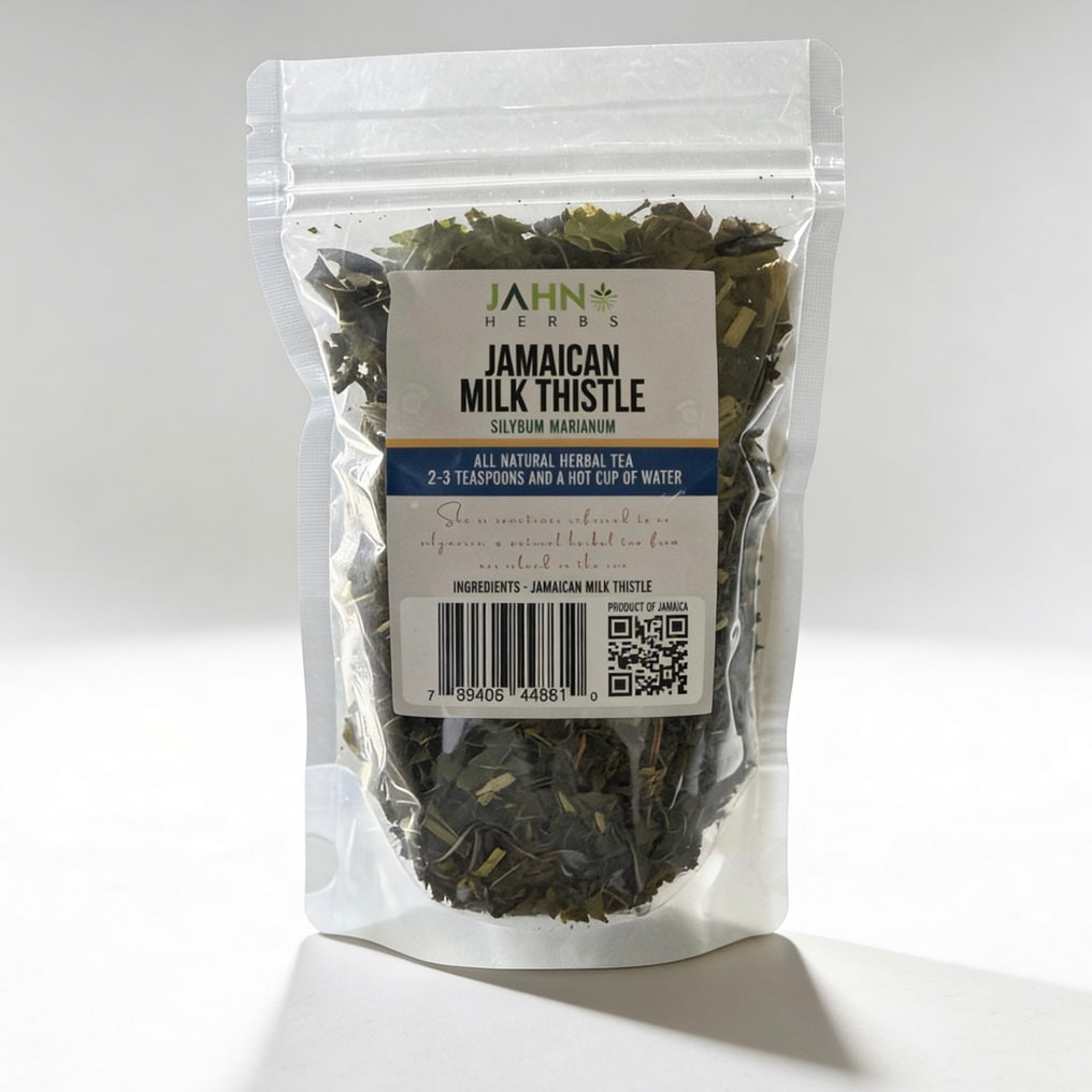 Jamaican Milk Thistle is a caffeine-free herbal Tea made from premium all natural all aspect of the plant. Rich in silymarin, a powerful antioxidant, this tea traditionally supports liver health and natural detoxification. Enjoy its mild, earthy flavor with a subtle bitter finish as part of your daily wellness routine.